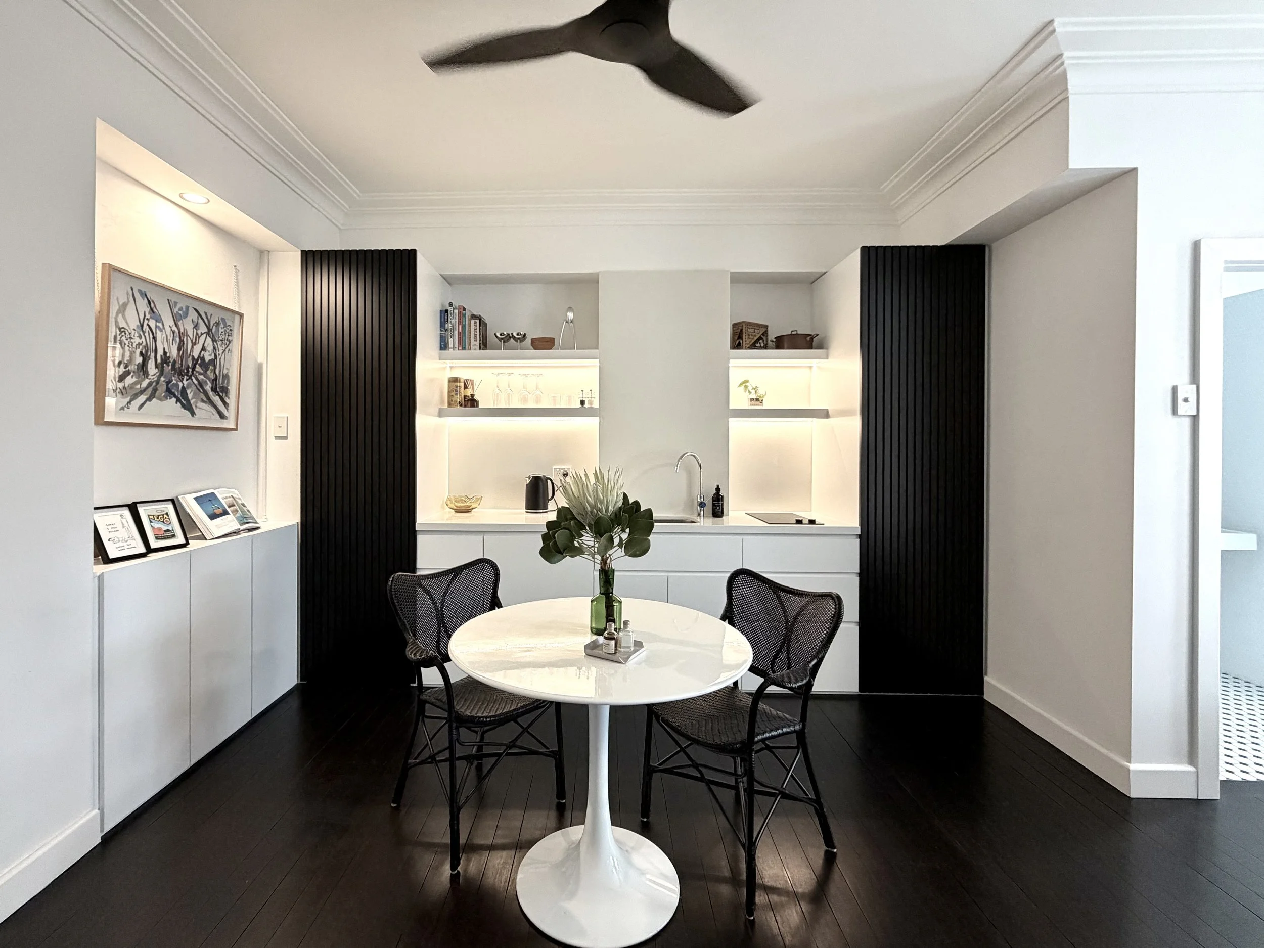 Potts Point studio, Airbnb-ready. We freshened up the walls, sharpened the lines, and delivered a crisp, clean finish that makes the whole space feel brighter and more sophisticated. Hard-wearing, low-fuss, and photo-ready - built for guests, listings, and long stays.